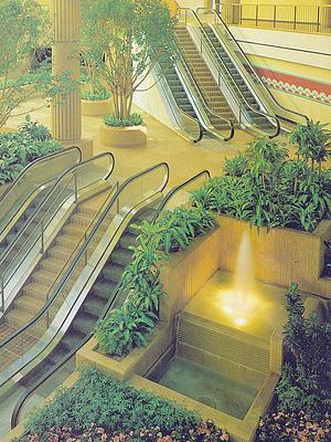 Can you hear the soprano sax? Two sets of escalators ascend and descend ad infinitum, like a specimen caught in amber. Reminding us of what once was, the commercial aboretum symbolizes the garden of eden from which we are perpetually leaving, from one decade of innocence into another of knowledge: Paradise Lost. This silky smooth poster whispers sweet promises of higher planes to ascend to, upper echelons to be reached. It serves as an oasis for the eyes; a reminder in the back of anyone’s living space that shopping is, indeed, a feeling.
